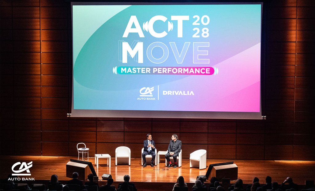 Para trasladar esta visión a la realidad del «Banco de la movilidad», Giacomo Carelli, Director General de CA Auto Bank y Presidente de Drivalia, presentó un segundo acrónimo, específico para el «Banco de la movilidad», que se sumará a ACT 2028: MOVE. Un acrónimo que se convierte en estrategia operativa: Master Performance (Dominar el rendimiento), Operational Excellence (Excelencia operativa), Virtuous Growth (Crecimiento virtuoso) y Enhance Experience (Mejora de la experiencia). Estos cuatro pilares sirven de brújula para dar vida a ACT 2028, transformando el plan en decisiones cotidianas y acciones concretas.